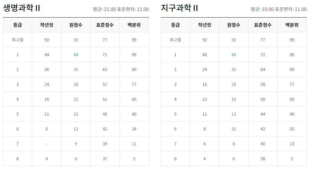 과목별 등급컷 및 난이도 분석