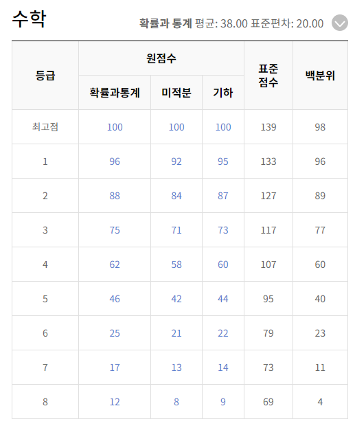 수학은 확률과 통계, 미적분, 기하로 나뉘어졌는데, 이번 모의고사에서 수학 난이도는 비교적 낮았어요.
